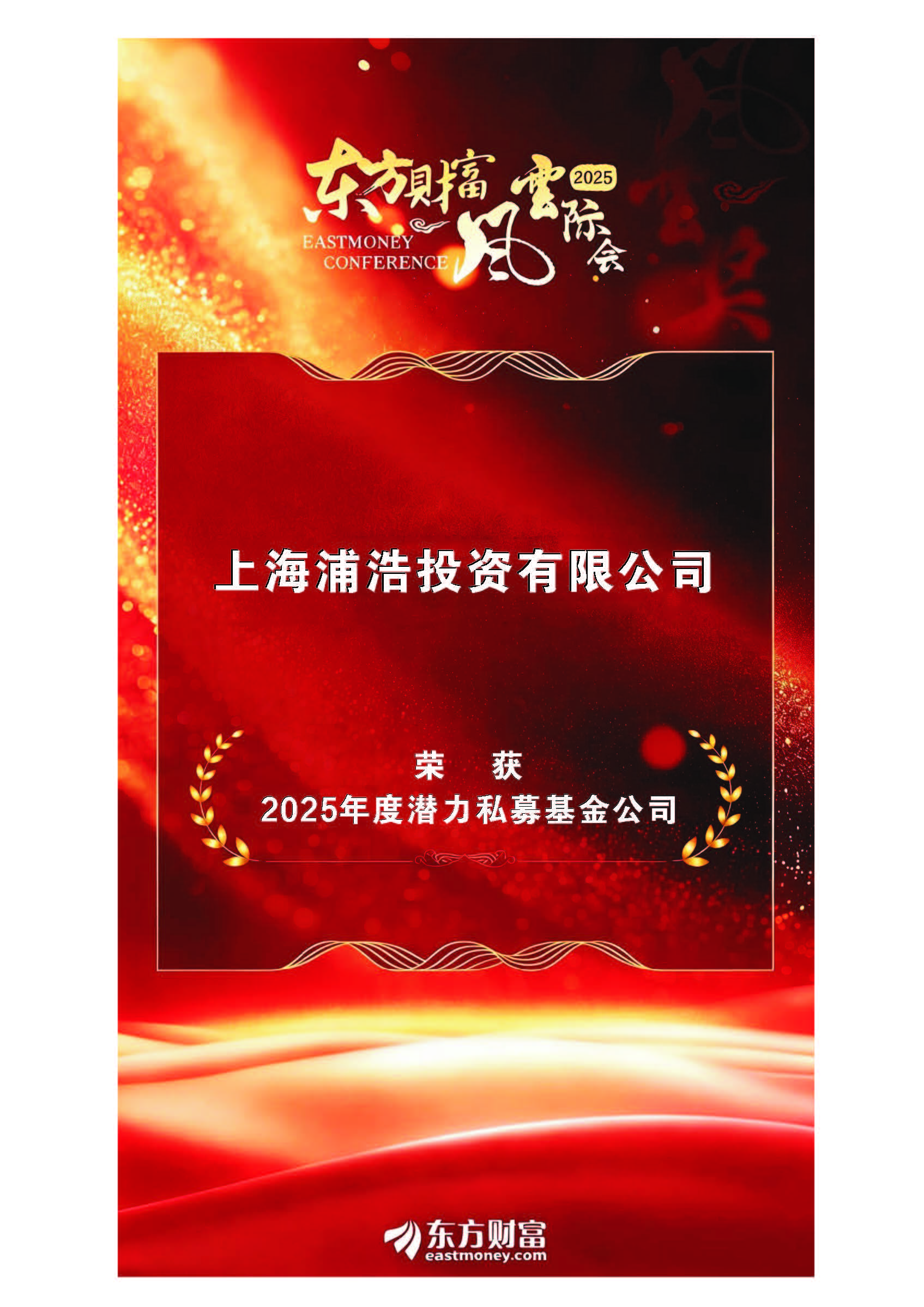 上海浦浩投资有限公司荣获东方财富私募风云际会“2025年度潜力私募基金公司”奖